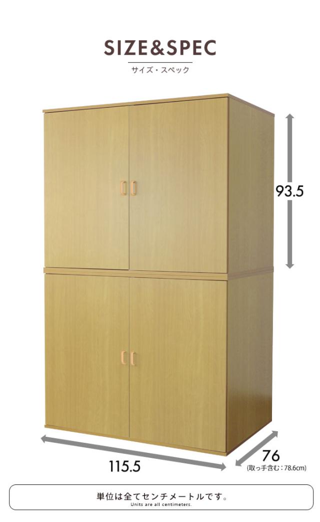 | 約幅115.5×奥行76(取っ手含む:78.5)×高さ93.5cm(※1段のサイズ) |