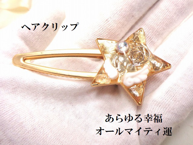 あらゆる幸福・金運・恋愛・仕事・オールマイティ運★ヒマラヤ産水晶★星★天使の羽根★ヘアクリップ★パワーストーン★護符(霊符)