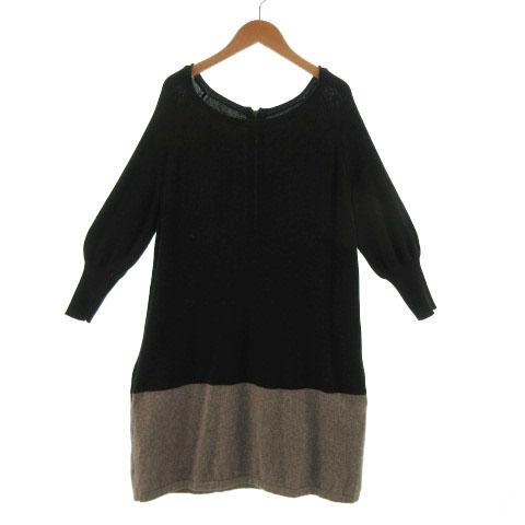 【中古】green label relaxing ユナイテッドアローズ ワンピース ニット 長袖 ミディ丈 ラメ バイカラー 黒 茶