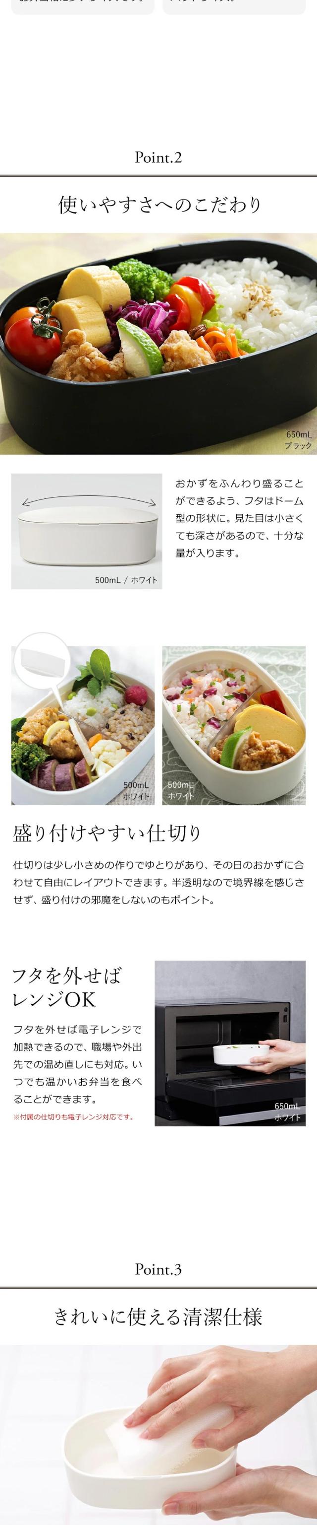 容量約500mLでコンパクトながらおかずを潰さずにふんわり盛れる、1段タイプの大人可愛いお弁当箱。汚れが付きにくい素材で洗いやすくお手入れが簡単。食洗機・電子レンジ対応です。