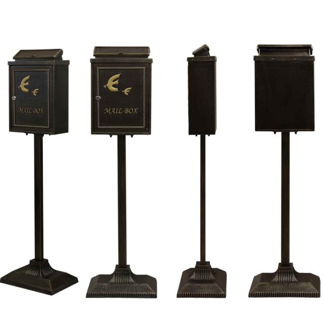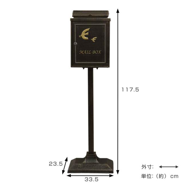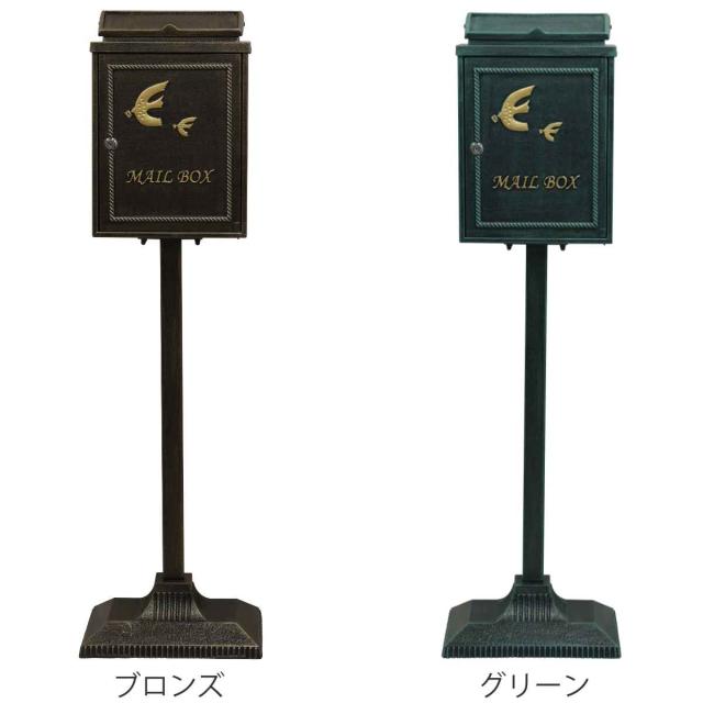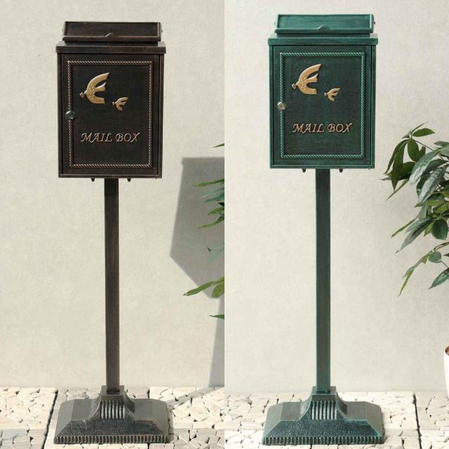 スタンドポスト 鋳物 Kotorino 郵便ポスト 置き型( 自立式 メール便ポスト 郵便ポスト 郵便受け メールボックス スタンド型 鍵付き 新聞受け 縦型 鍵 飾り 一戸建て 屋外 玄関 壁 本体 A4 角2 おしゃれ 置くだけ 小鳥 )