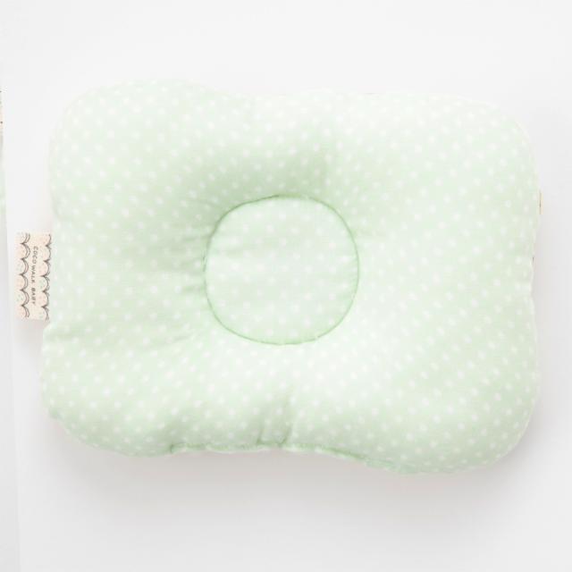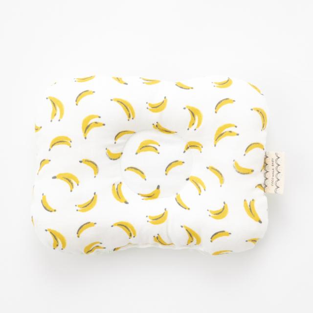 フルーツ柄とドット柄のリバーシブルのまくらは、くぼみがあり、赤ちゃんの頭にフィットし安定させることができます。洗濯ネットに入れて洗濯機で洗えるので、いつでも清潔に保てます。
