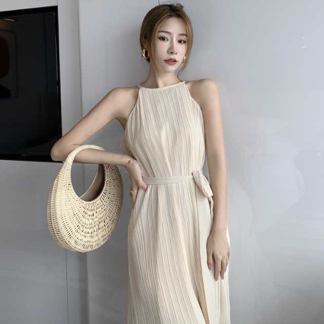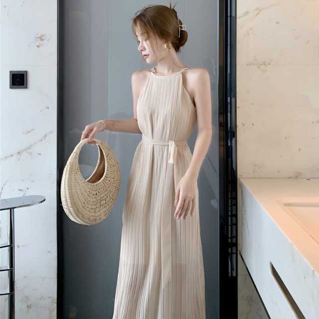 ワンピース ホルターネックワンピース ノースリーブワンピース Aラインワンピース ロングワンピース タンクトップワンピース ホルターネックワンピ ロング丈 無地 シフォン 大きいサイズ キレセク