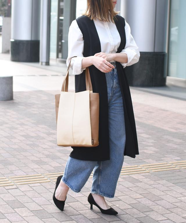 自分のスペース(自分の身幅)の中でコンパクトに持ち、使いやすいバッグ。