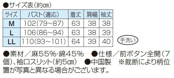 ●仕様/前ボタン全開(7個)、袖口スリット(約5cm)
