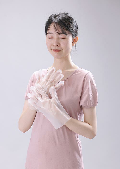 *米ぬかハンドパックを手にはめると密閉されて手が「しっとり」「スベスベ」に。