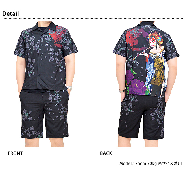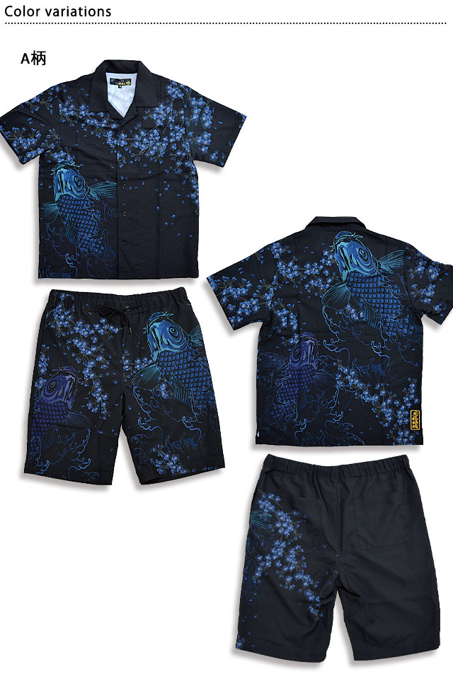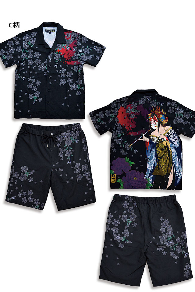 絡繰魂さんから「闇シャツセットアップ(222801)」のご紹介です。 去年人気を博したシャツ型のセットアップが今年も登場!! 柄は3種類からお選び頂くことが出来ます。 トップス左胸、ショーツ両サイド、バック両側にはそれぞれポケットを配置。 ショーツのトップボタンにはシンプルなものを採用し、穿き心地の良いジッパーフライ仕様に。 セットではもちろん、別々での着用もオススメ。 | ||||||||||||||||||||||||||||||||||||||||||||||||||