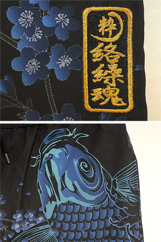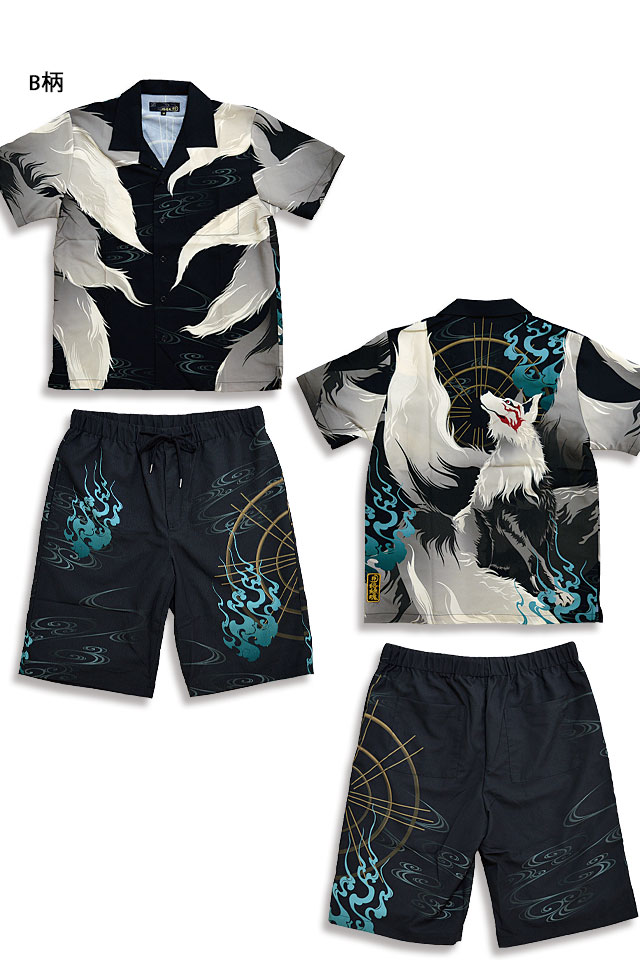 闇シャツセットアップ 絡繰魂 222801 和柄 和風 アロハ 上下 鯉 花魁 狐面 九尾