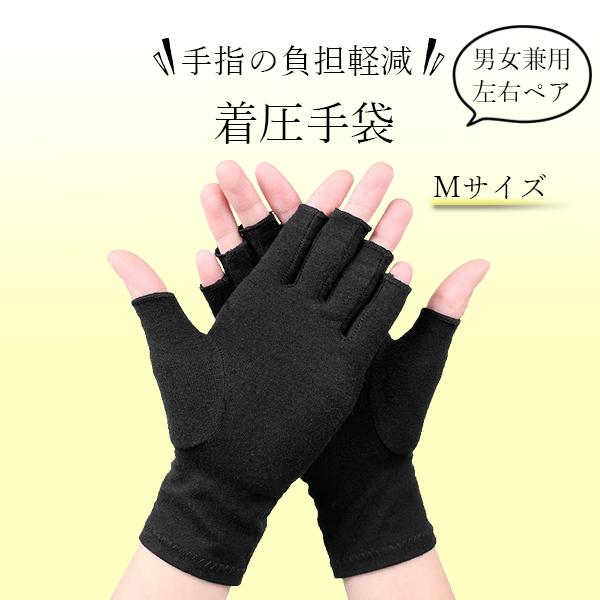 2個セット 手袋 サポーター 着圧 バネ指 手首 引き締め 指なし 関節炎 腱鞘炎 ブラックM (管理S) 送料無料