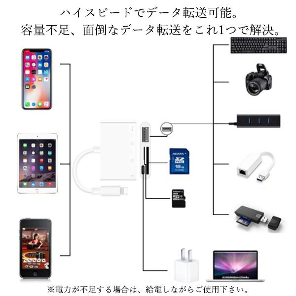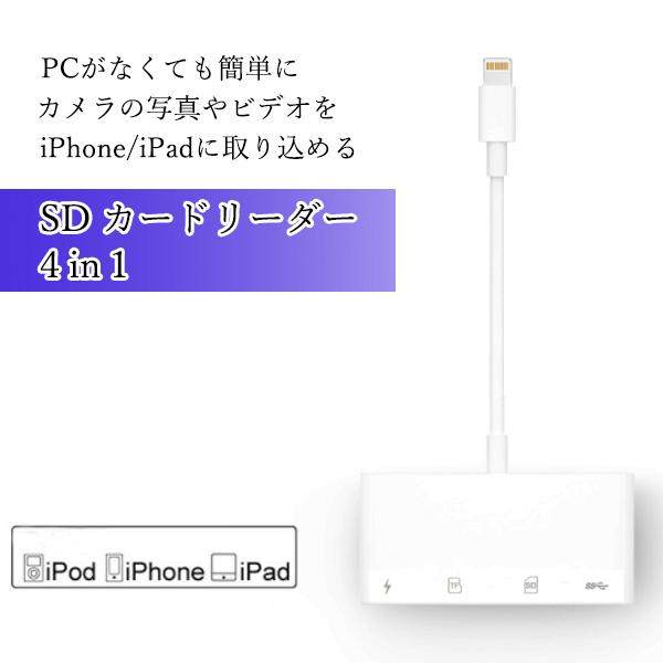 2個セット iPhone iPad SD カードリーダー 4in1 USB 接続 Lightning データ 転送 写真 バックアップ SDカード TFカード USBメモリ (管理S) 送料無料
