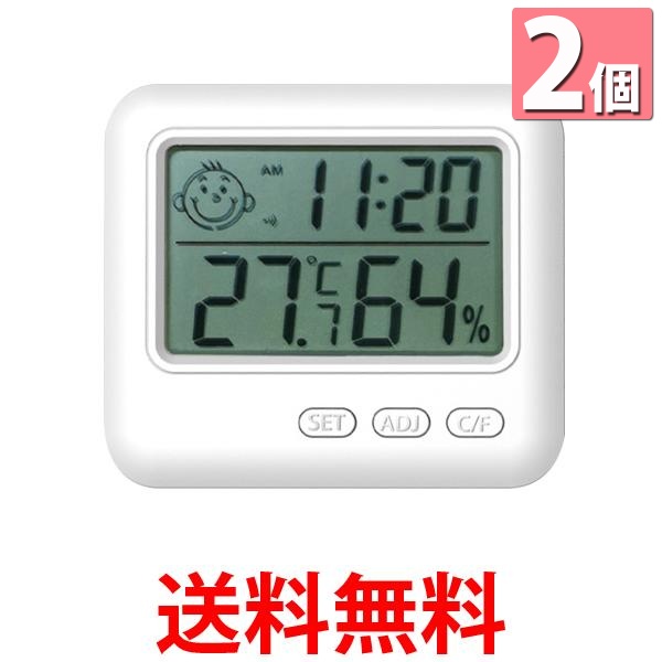 2個セット デジタル温度計 湿度計 温湿度計 デジタル おしゃれ 高精度 温湿度計付き 時計 正確 室外 室内 壁掛け 卓上 アラーム (管理S) 送料無料