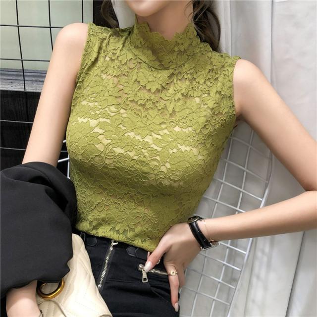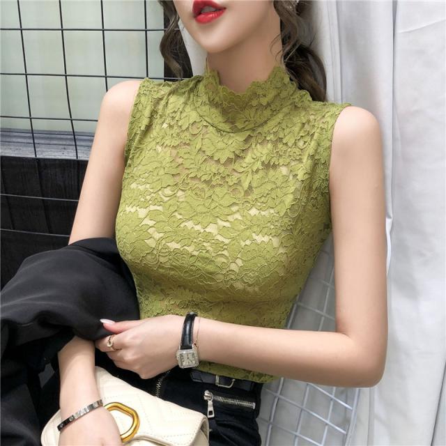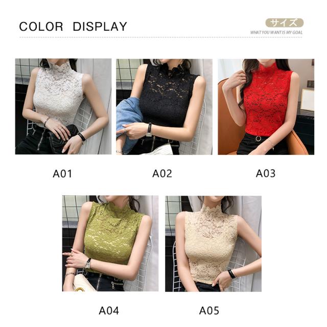 タンクトップ 総レース レディース インナー 花柄 セクシー トップス ハイネック 透け感 エレガント 重ね着 スカラップ 大人