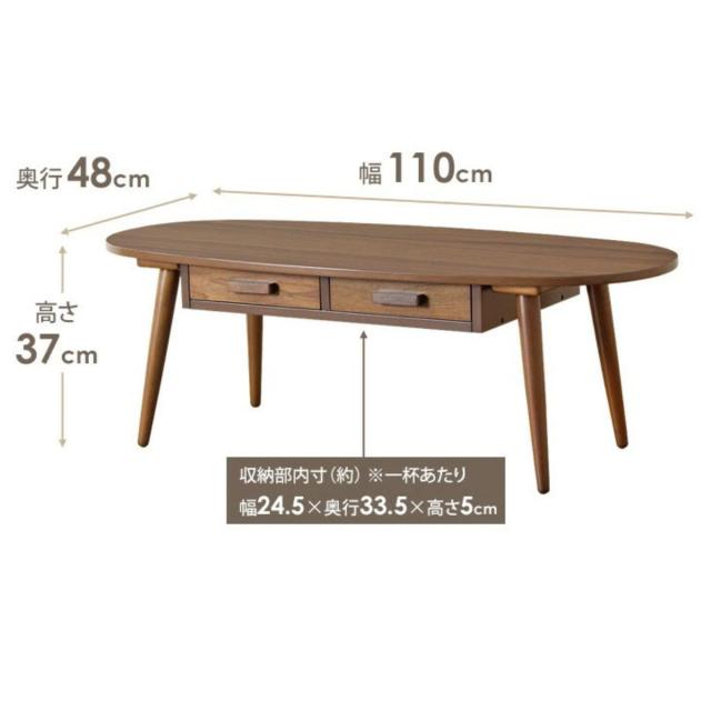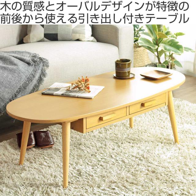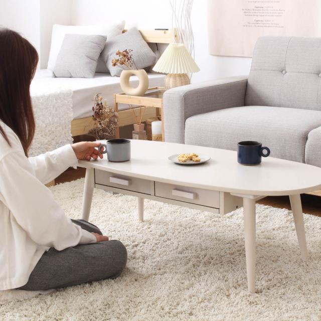 センターテーブル 幅110cm 木製 オーバル 引き出し ( テーブル ローテーブル リビングテーブル 収納付き 机 北欧風 おしゃれ シンプル 木目調 ナチュラル ブラウン ホワイト 白 丸 )