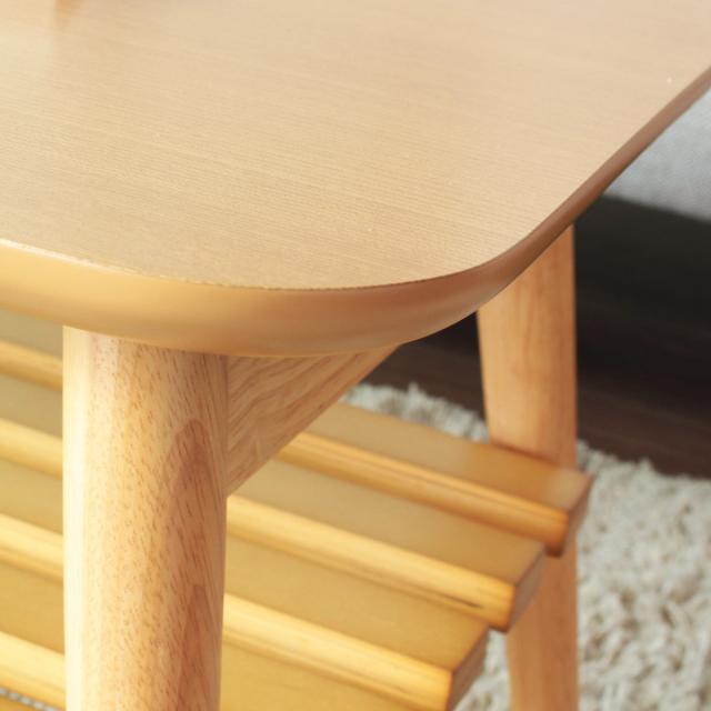 本物に見劣りしないリアルな木目の風合いが、お部屋にぬくもりを与えてくれるラック付き折りたたみテーブルです。北欧テイストな丸みを帯び、触れる人をいたわるような優しく美しいフォルムです。シンプルで飽きのこないデザインなので、他の家具・インテリアとも親和性が高く、簡単におしゃれな空間を演出できます。