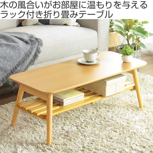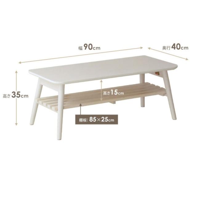 センターテーブル 幅90cm 折りたたみ ラック付き 木製 ( テーブル ローテーブル リビングテーブル 折り畳み 机 つくえ 天板下 収納 棚付き 木目調 北欧風 コンパクト おしゃれ 長方形 白 ホワイト ナチュラル ブラウン )