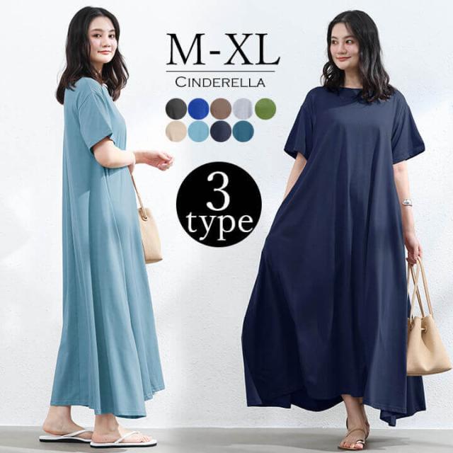 ワンピース マキシ丈ワンピ カジュアル 20代 30代 40代 ロング エレガント 大人 Aライン シンプル 上品 ノースリーブ 半袖 長袖 3タイプ 無地 抜け感 ポケット ドロップショルダー 細見え 長め丈 ゆるワンピ 部屋着 マタニティ 華奢見え マキシ丈 合わせやすい