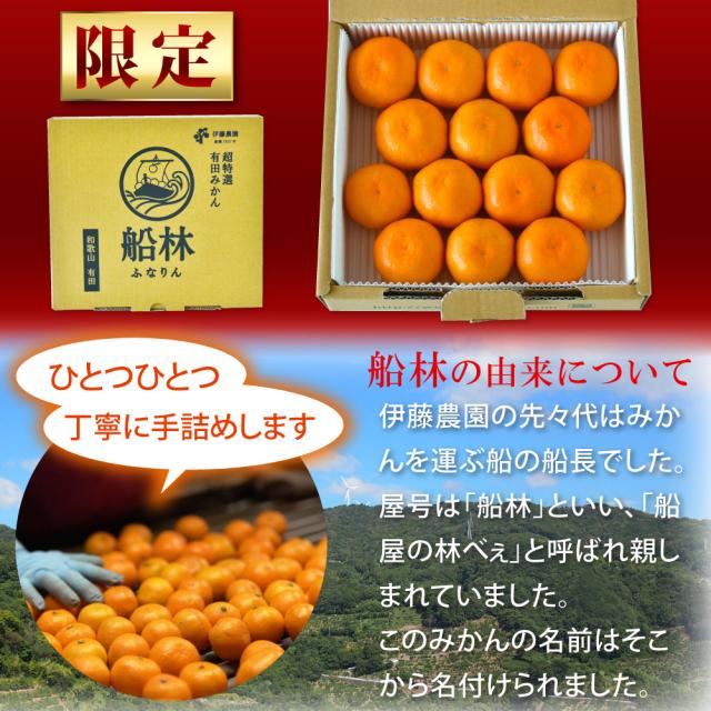 【11月下旬以降に発送予定】みかん 超特選 有田みかん 送料無料 小玉 高級 糖度12度以上 光センサー選果 船林 ふなりん S M 12〜14個 和歌山 手詰め ご当地 お贈答 結婚 出産 内祝 誕生日 ギフト