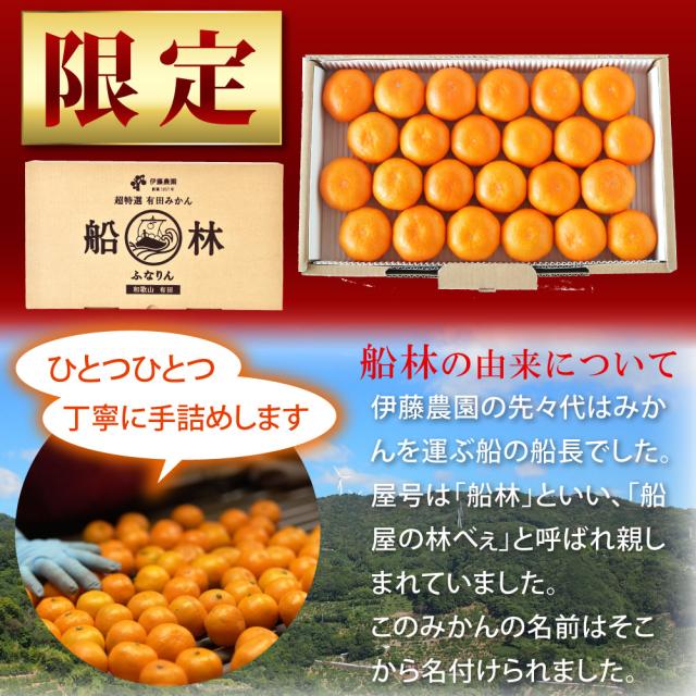 年内発送 正月用 みかん 超特選 有田みかん 送料無料 小玉 高級 糖度12度以上 光センサー選果 船林 ふなりん S M 22〜24個 約1.5kg 和歌山 手詰め ご当地 お贈答 結婚 出産 内祝 誕生日 ギフト