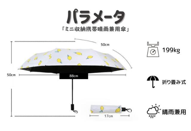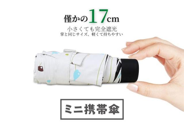 傘直径(使用時):80cm 親骨(使用時):50cm 長さ(折りたたみ状態):17cm 幅(折りたたみ状態):6cm 骨の数:6本 重さ:199g