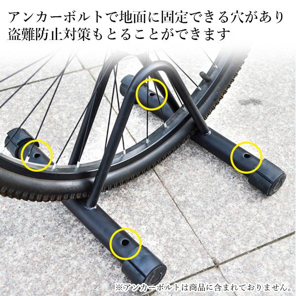 ・自転車スタンドにはアンカーボルトで地面に固定できる穴が4か所開いているので盗難防止対策もとることができます。