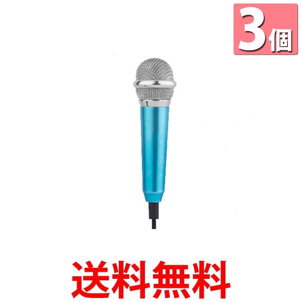3個セット スマホ用 ミニ マイク カラオケ 通話 3.5mmプラグ 歌 Android スマホ カラオケアプリ 軽量 ブルー (管理S) 送料無料