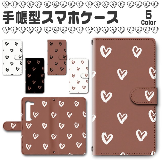 スマホケース 手帳型 AQUOS R5G SHG01/SH-51A/908SH 対応 送料無料 ハート ブラウン 茶色 シンプル / dc-386