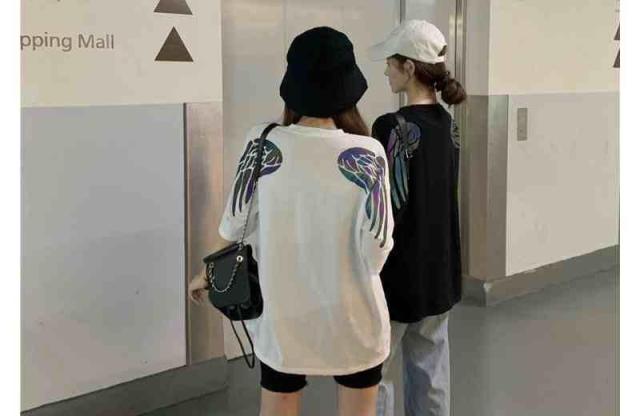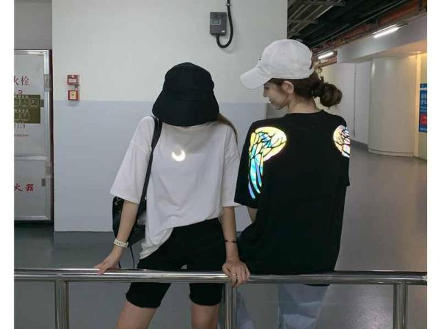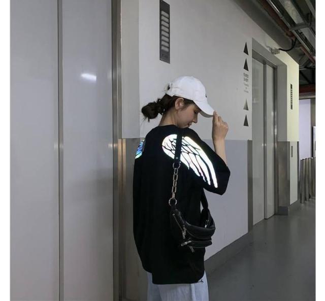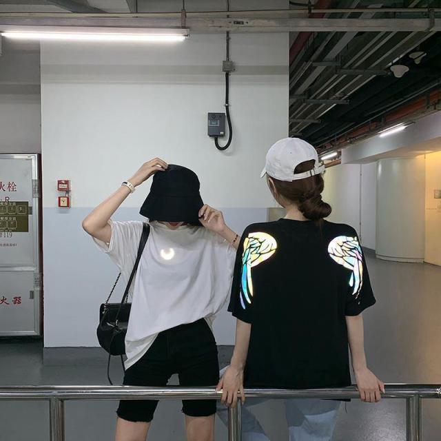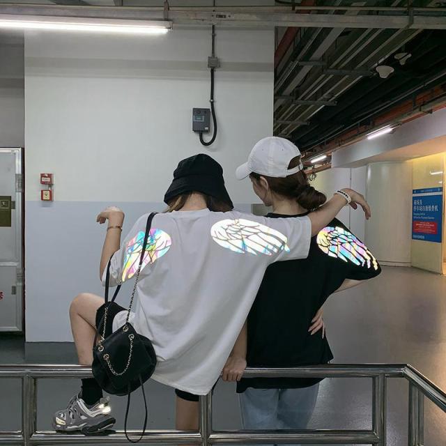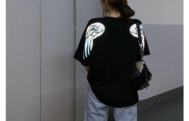 Tシャツ カップル 半袖 ソリッドカラー 反射 ウィング シンプル トップス おしゃれ 送料無料 多サイズ