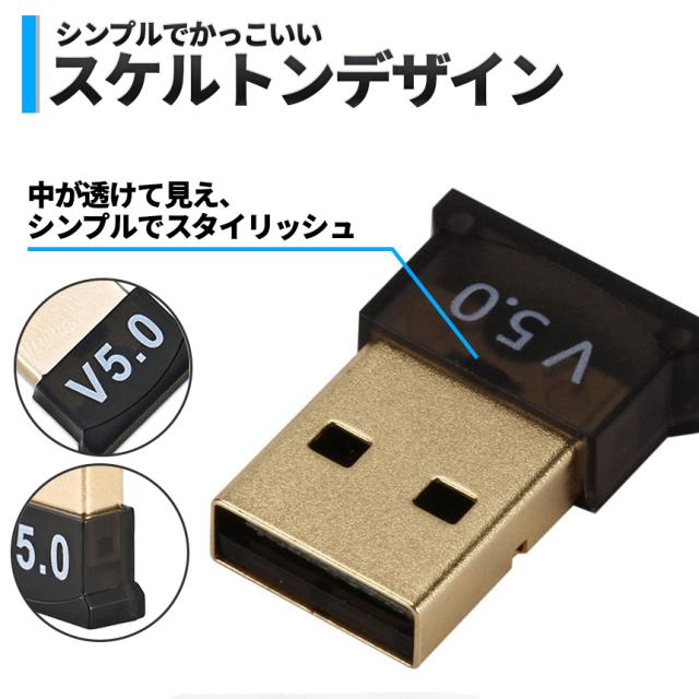 Bluetooth 5.0 USB ワイヤレス アダプター ドングル スケルトン 半透明 無線 小型 ノート パソコン PC キーボード マウス ヘッドホン イヤホン USB2.0 ブルートゥース プリンター SKELEBT 送料無料