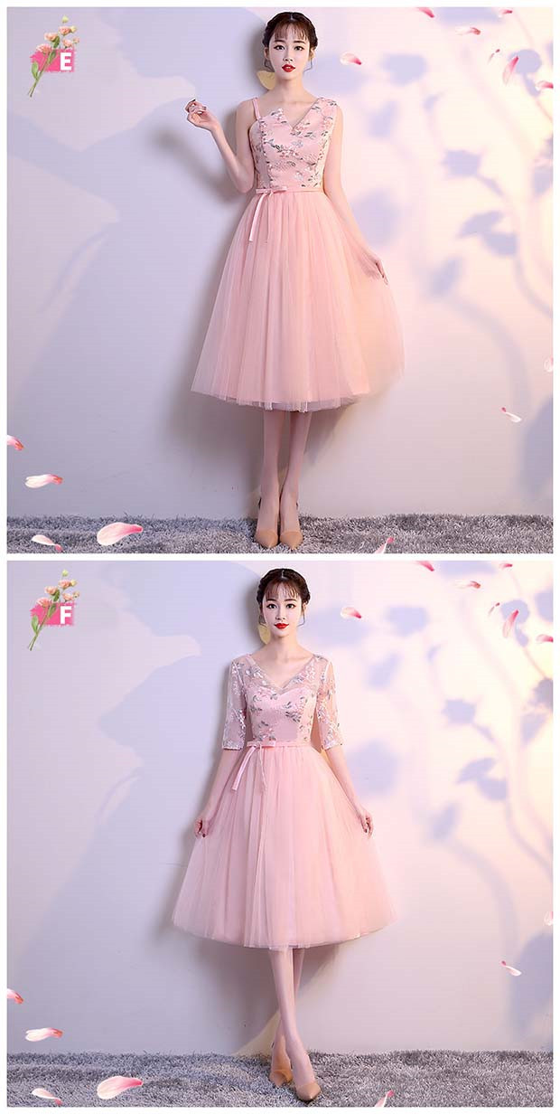 ブライズメイド ドレス ショート丈 二次会 パーティー ピンク グレー 結婚式 体型カバー Aラインドレス 謝恩会 発表会 演奏会 大きいサイズ