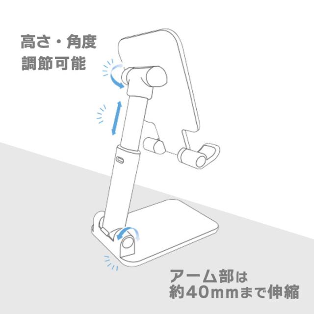 スタンドの高さや角度の調整が可能で、アーム部は約40mmまで伸縮します。