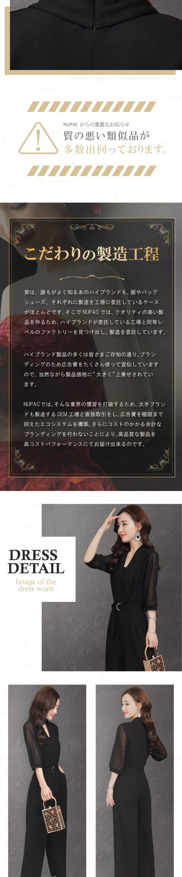 NUPACドレスでは、着るだけでキレイなAラインシルエットをカンタンに作り出せるようになっています。