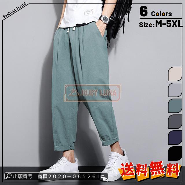 赤字覚悟 送料無料 メンズ パンツ メンズ イージーパンツ 薄手 クロップドパンツ ゆったり 大きいサイズ 夏ズボン 涼しい リネン ストレート カジュアルパンツ 接触冷感 無地 吸汗 速乾 快適 ひんやり