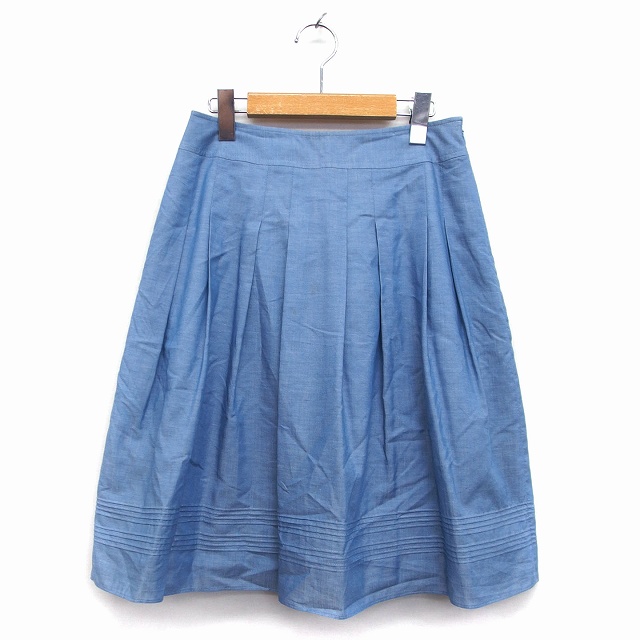 【中古】アリスバーリー Aylesbury フレア スカート 膝丈 綿混 麻混 デニム タック 薄手 9 ブルーパープル 青紫 /HT28
