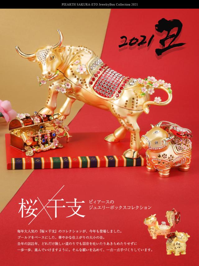 金福 宝丑 干支 牛 縁起物 ジュエリーボックス ピィアース 東京銀座PICALS 東京銀座ピカルス 可愛い ブランド おしゃれ プレゼント オブジェ 置物 動物 誕生日プレゼント プロポーズ ペット 骨壺 メモリアルボックス ペット