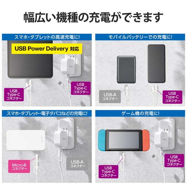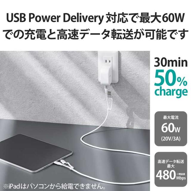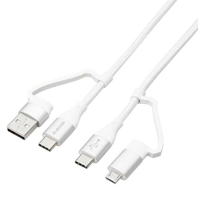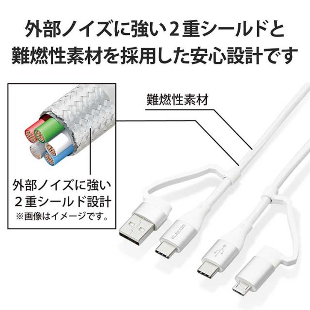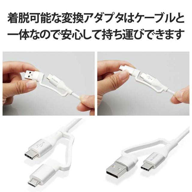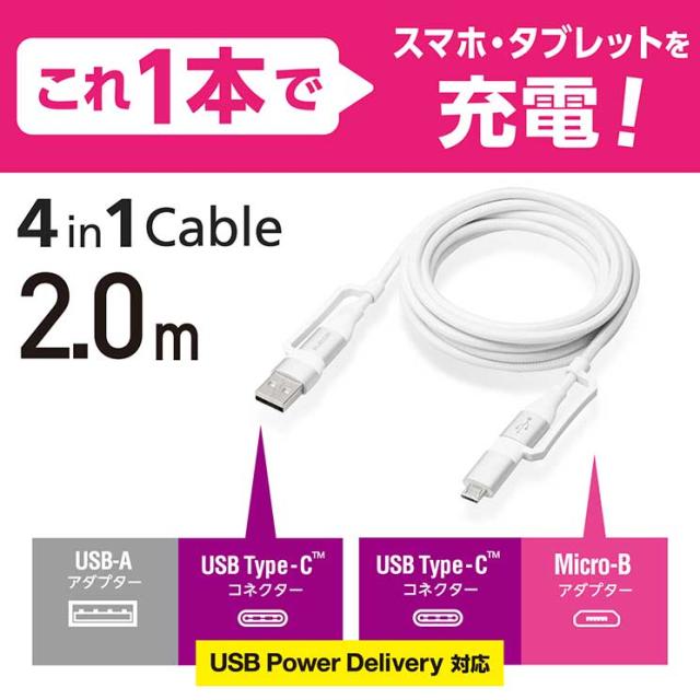 エレコム 4in1 充電ケーブル USB Type C + USB A to USB Type C + microUSB PD 60W対応 ケーブル 2m iPad Macbook Chromebook Android 充電器 ホワイト ELECOM