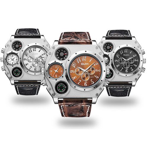 Oulm 4フェイス腕時計 ファッション男性 メンズウォッチ