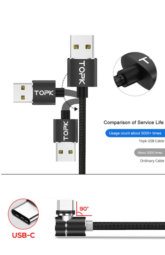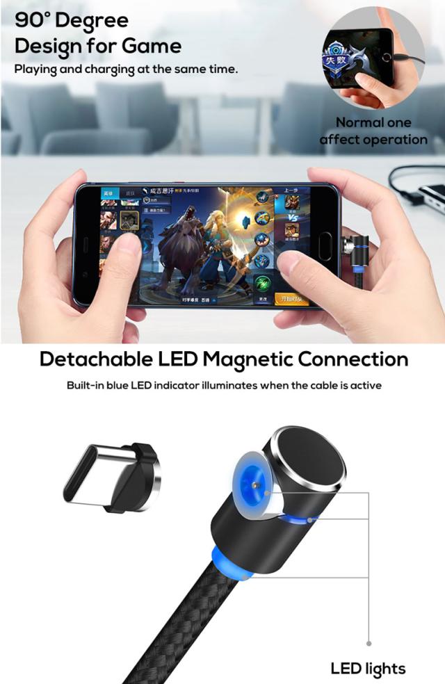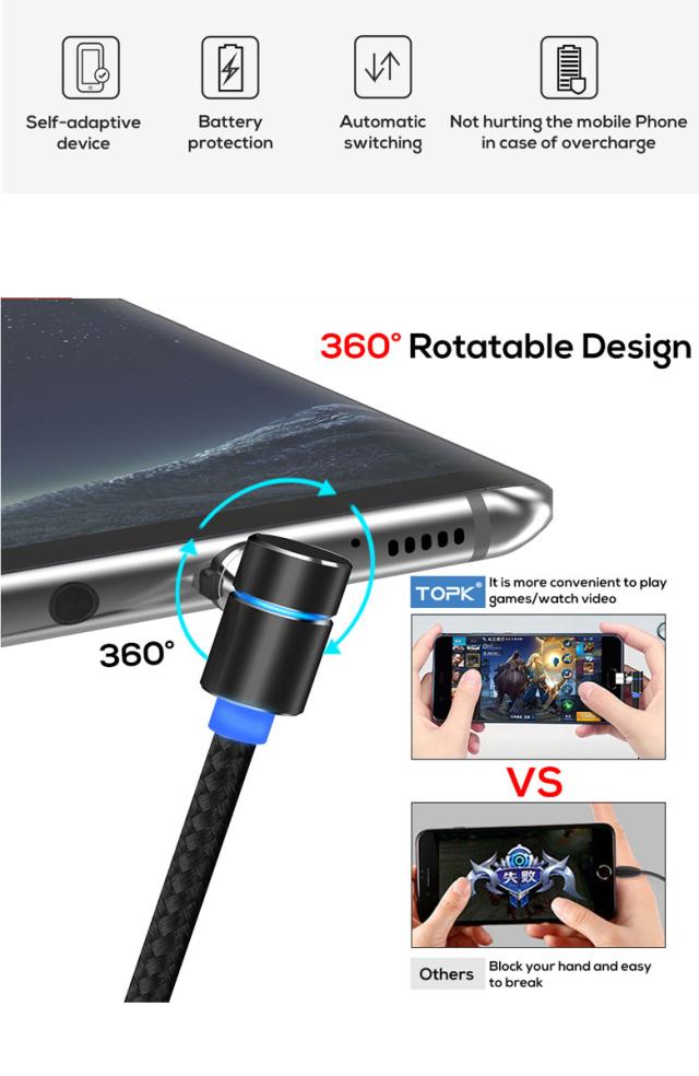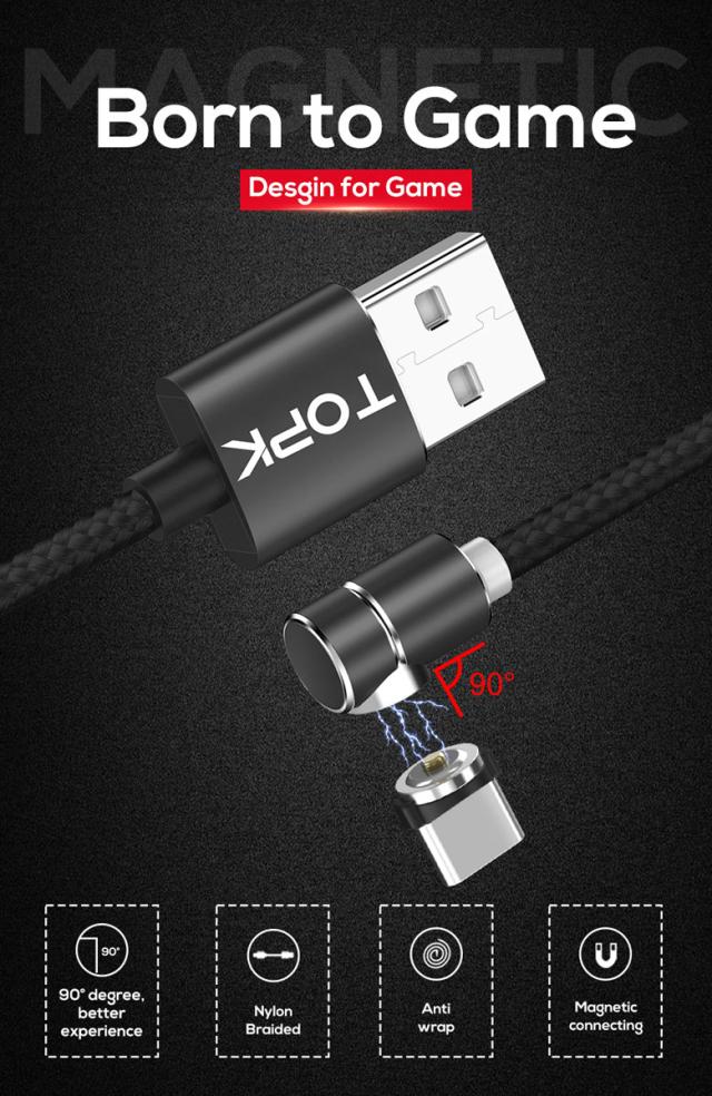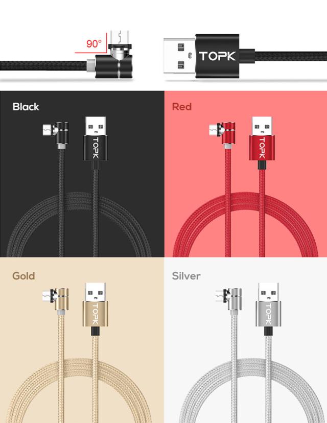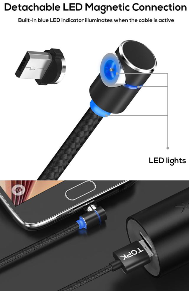 TOPK 3in1 マグネット充電ケーブル 2m 急速充電 マグネット 充電ケーブル ケーブル マイクロUSB 充電器 コネクタ iPhone 充電ケーブル アンドロイド