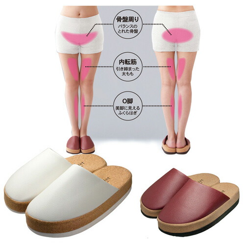 普段鍛えにくい内転筋、骨盤周り、O脚対策が意識できるスリッパです。