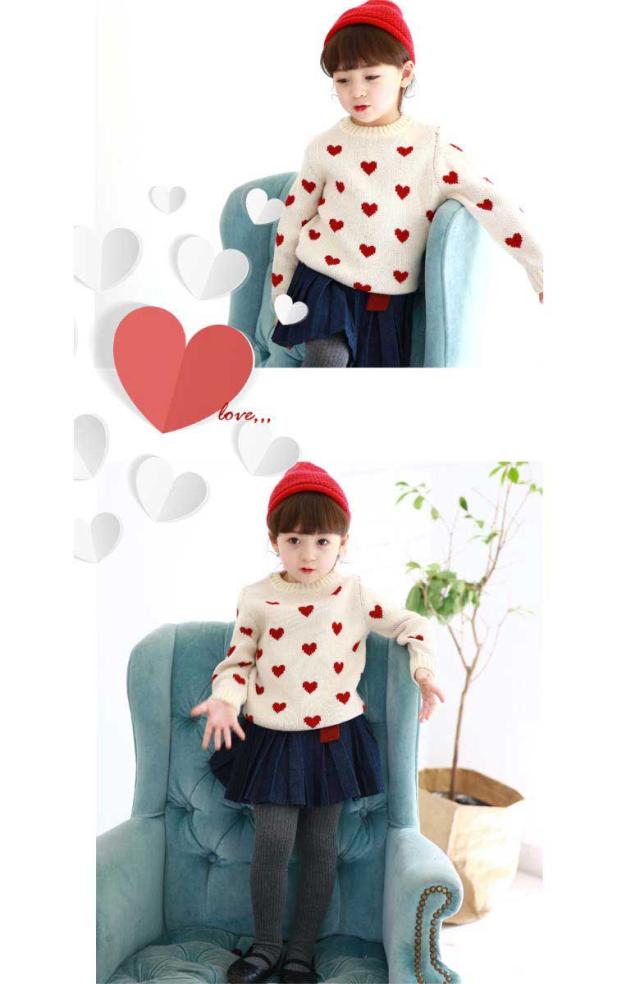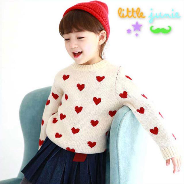 【Love Love Knit】子供服 フォーマル かわいい キッズ 韓国子供服 女の子 秋 冬 90cm 100cm 110cm 120cm 130cm 140cm 長袖 トップス カットソー トップス ガールズ メンズ Tシャツ 長そで チュニック ニット ハート柄 LOVE