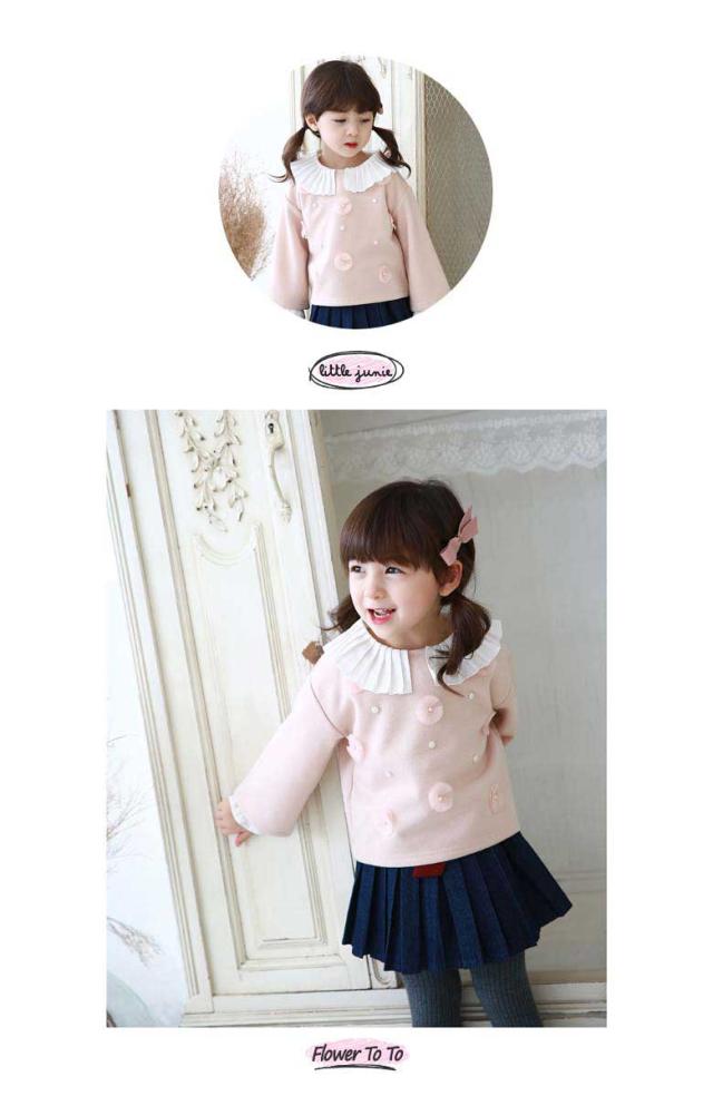 【Flower To to】子供服 フォーマル かわいい キッズ 韓国子供服 女の子 秋 冬 90cm 100cm 110cm 120cm 130cm 140cm 長袖 トップス カットソー トップス ガールズ Tシャツ 長そで チュニック フリル襟 フラワー 花