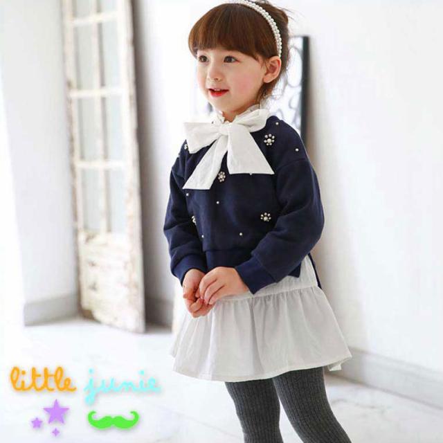 【DM便送料無料】【Pearl Flower T-shirts】子供服 フォーマル かわいい キッズ 韓国子供服 女の子 キッズ 90cm 100cm 110cm 120cm 130cm 140cm 長袖 トップス カットソー トップス ガールズ 秋冬 Tシャツ 長そで カラバリ チュニック かわいい おしゃれ