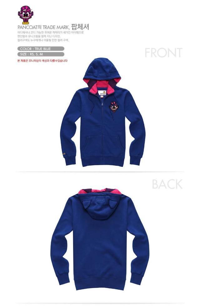 【正規品】POPCHESHIRE 4D HOODIZIPUP (A-5/HI) (TRUE BLUE)/パーカー/パンコート/キャラクター/LONG T/長袖/耳付きパーカー/アニマル/ブルー/アウター/キャラクター/メンズ/レディース/ジャージ/オシャレ/男女兼用/裏起毛/暖かい/保温性抜群/防寒