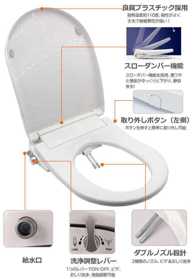 便座 交換 シャワートイレ 電源不要 便座 洗浄便座 水洗浄便座 水圧式 非電源式 取り付け簡単 送料無料