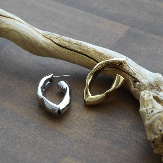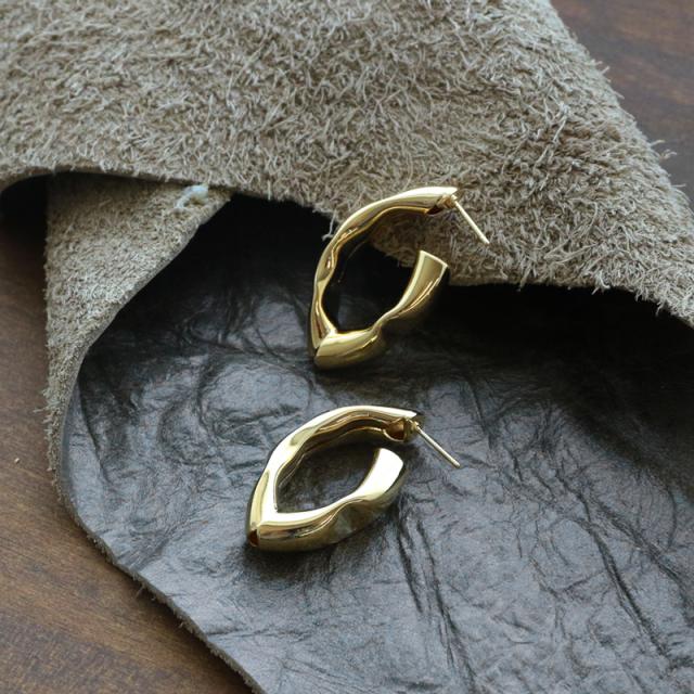 | パイプ表面に平打ち加工を施したおしゃれなフープピアスです。 艶やかなメタルのクールな表情の中に女性らしさが引き立ちます。 季節を問わずに身に着けられるフープデザインは幅広い層から支持が高い一品です。 | |