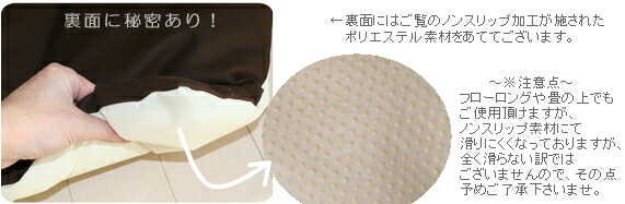 中わたのヨレを防ぐために4ヶ所にタタキミシンを入れ、裏面にはノンスリップ生地を施して滑りにくくなっております。