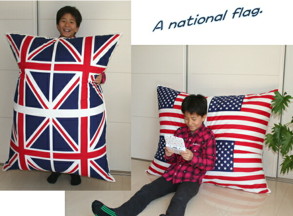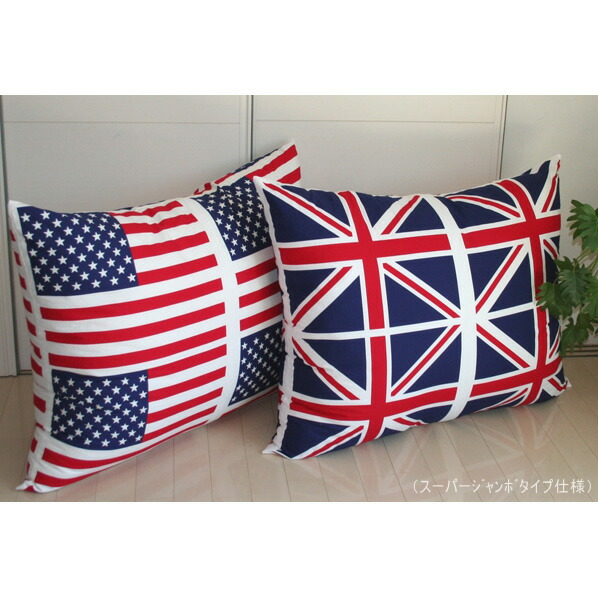 国旗 スーパージャンボクッション 90x115cmは 発送日当日の「わた入れ加工」でふ〜っかふか 日本製【 大きい 背当クッション 枕 まくら インテリア イギリス アメリカ 星条旗 ユニオンジャック】