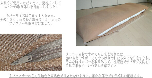 長座布団 メッシュ 日本製 カバー脱着式 6カ所マジックテープ付き 発送日わた入れ加工 約65x170x12cm 送料無料 洗える 大人 ごろ寝マット お昼寝マット 通気性 長ざぶとん TV枕 テレビ枕 車中泊 キャンプ アウトドア 70×180cm 涼しい ごろ寝枕 母の日 父の日