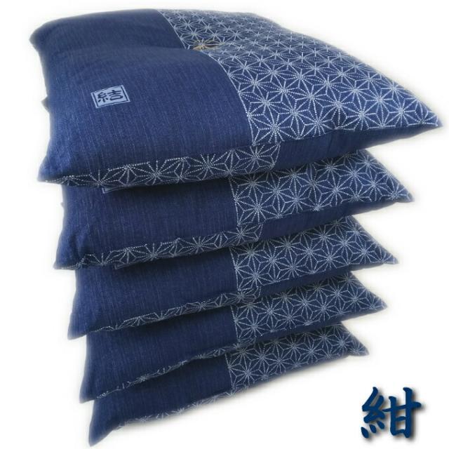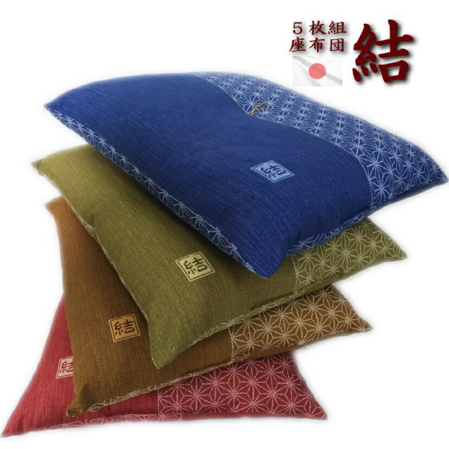 座布団 5枚組 結 色組み合わせ自由 発送日当日のわた入れ加工 日本製 送料無料 新築祝い ギフト 国産 おしゃれ サシコ プリント柄 刺し子 法事 居酒屋 5枚セット 和調 お盆 お中元 お歳暮