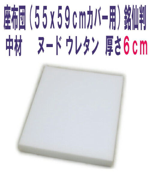 ヌード ウレタン座布団 50×54×厚さ6cm 銘仙判サイズ (55×59cmカバー用) 中材 ザブトン ざぶとん ヌードクッション インナークッション 中芯 国産 日本製 スポンジ やわらかい やわらかめ 業務用 居酒屋 旅館 中身 DIY ハンドメイド 造形 白