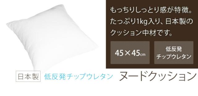 ヌードクッション 背当(45×45cmカバー用) 中材 “低反発チップウレタン” もっちり もちもち ヌード中材 クッション中材 低反発ウレタン クッション中身 低反発クッション 中身だけ カバーなし 手作りクッション 材料 ハンドメイド DIY 日本製